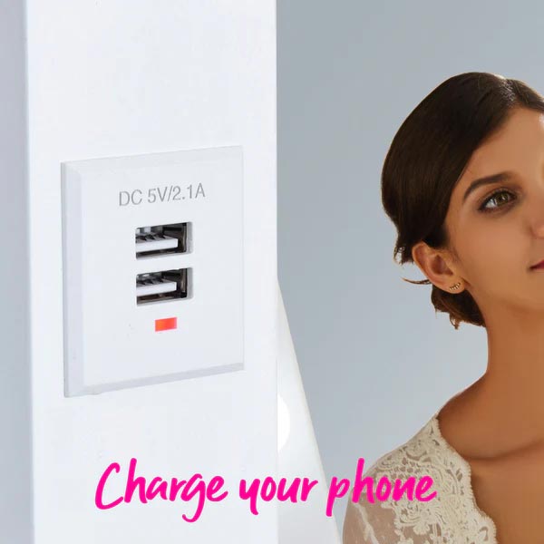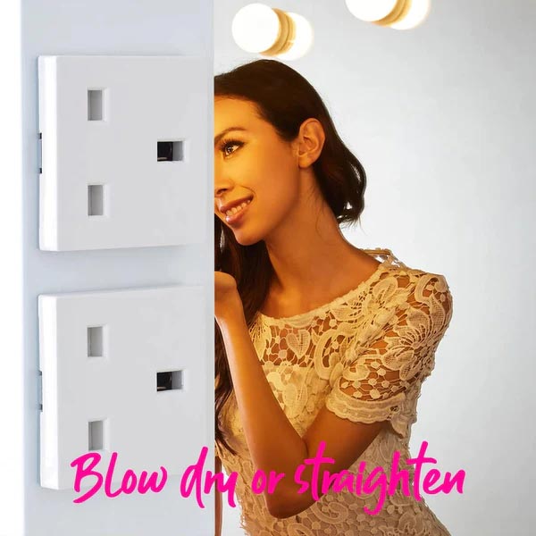 - 2 x Plug Sockets and 2 x USB Ports ~ Hairdryer, straightener & phone all at your fingertips